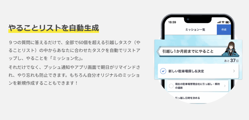 やることリストが時系列で管理され、リマインダー通知もあるため、「忘れてた!」というトラブルが激減します。特に手続きに不慣れな人や、家族の引越しをまとめて管理する人には大きなメリットです。