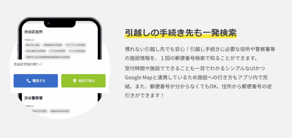 役所や手続き先を自動で検索・案内